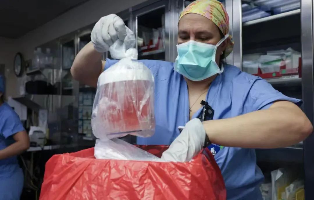 医护团队取出猪肾,准备开展移植手术