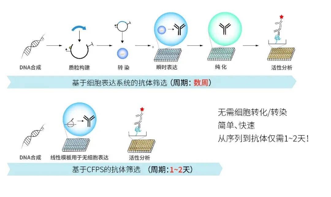 基于细胞表达系统与基于CFPS的抗体筛选对比